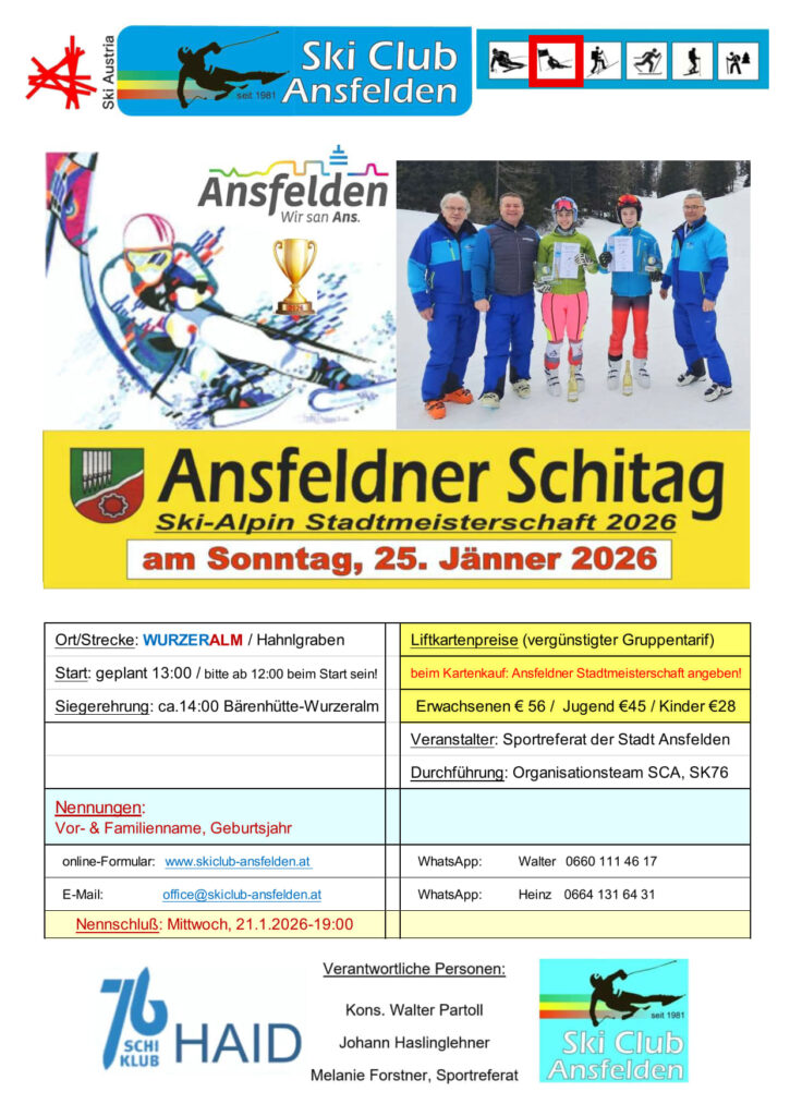 Ansfeldner Schitag Der Ansfeldner Schitag findet am Sonntag, 25. Jänner 2026 auf der Wurzeralm statt.Start: 13:00 Uhr