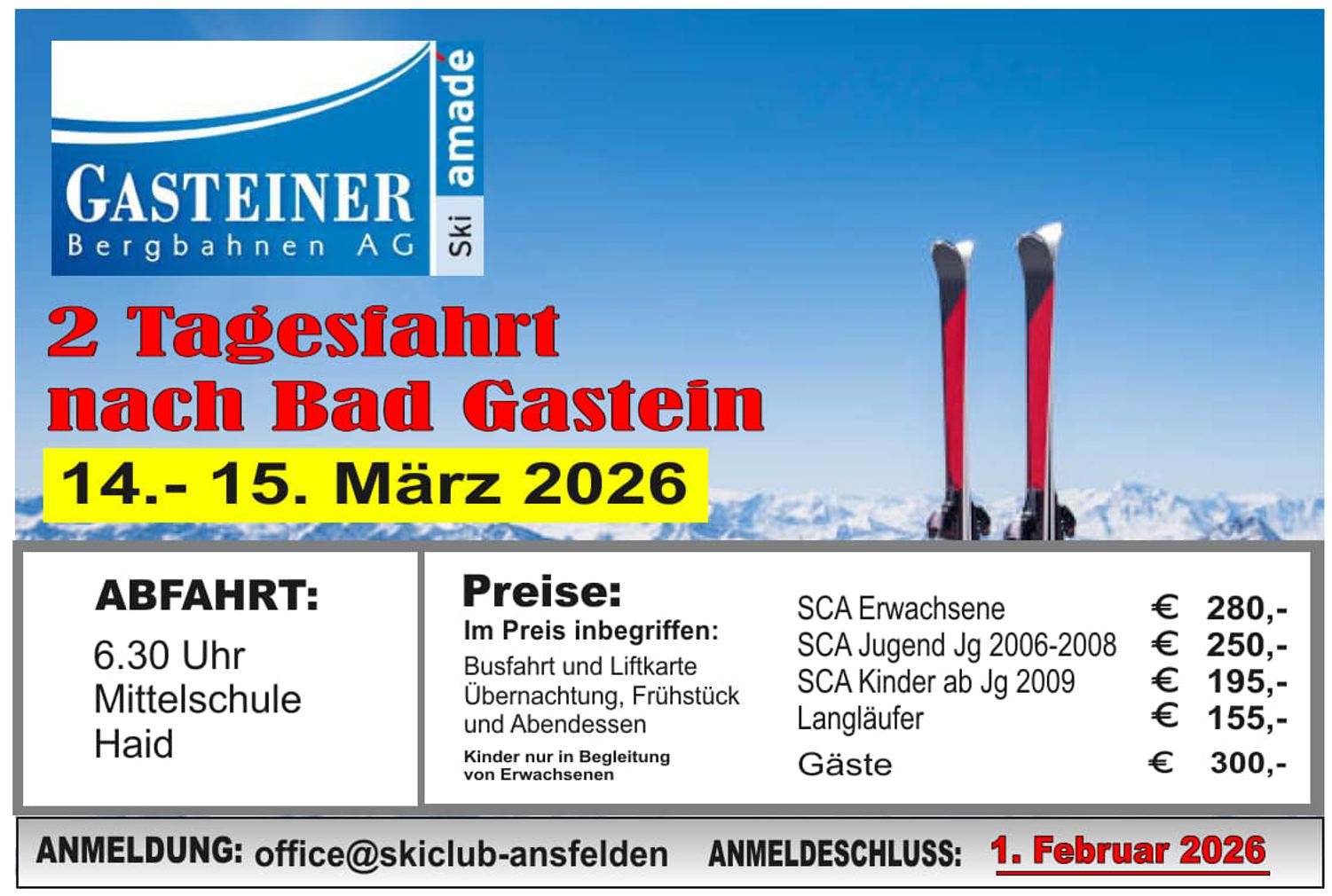 Anmeldung ´office@skiclub-ansfelden´ oder bei Walter Partoll (Tel: 0660 1114617)